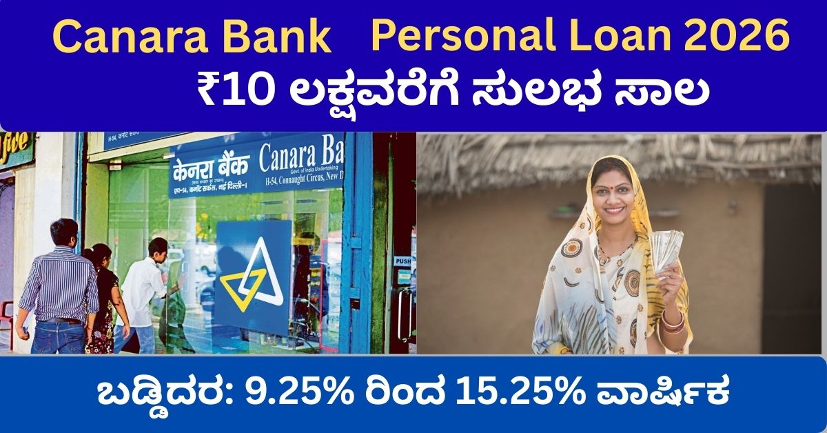 ಭಾರತದ ಪ್ರಮುಖ ಸಾರ್ವಜನಿಕ ವಲಯದ ಬ್ಯಾಂಕ್ಗಳಲ್ಲಿ ಒಂದಾದ Canara Bank ಗ್ರಾಹಕರಿಗೆ ಆಕರ್ಷಕ ಶರತ್ತುಗಳೊಂದಿಗೆ Personal Loan ನೀಡುತ್ತಿದೆ. 2026ರಲ್ಲಿ Canara Bank Personal Loan ಯೋಜನೆ ಇನ್ನಷ್ಟು ಸುಲಭ ಹಾಗೂ ಗ್ರಾಹಕ ಸ್ನೇಹಿ ಆಗಿದೆ. ಈ ಲೇಖನದಲ್ಲಿ ನೀವು ತಿಳಿಯಬೇಕಾದ ಎಲ್ಲಾ ಪ್ರಮುಖ ಮಾಹಿತಿಯನ್ನು ವಿವರವಾಗಿ ನೋಡೋಣ.