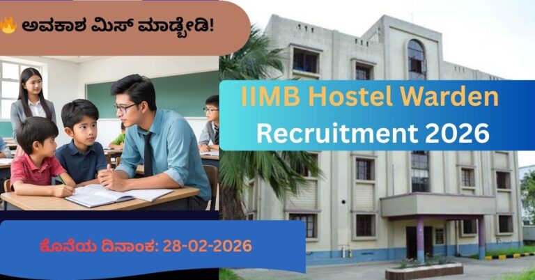 IIMB Hostel Warden Recruitment 2026 ಹೆಲೋ ಸ್ನೇಹಿತರೆ 👋ನೀವು ಬೆಂಗಳೂರಿನಲ್ಲಿ ಉನ್ನತ ವೇತನದ ಪ್ರತಿಷ್ಠಿತ ಉದ್ಯೋಗ ಹುಡುಕುತ್ತಿದ್ದೀರಾ? ನಿಮ್ಮ ಕನಸು ಈಗ ನಿಜವಾಗಬಹುದಾದ ಸಮಯ ಬಂದಿದೆ!ಭಾರತದ …
