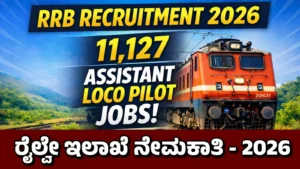 RRB ನೇಮಕಾತಿ 2026 ಅಡಿಯಲ್ಲಿ 11,127 ಅಸಿಸ್ಟೆಂಟ್ ಲೋಕೋ ಪೈಲಟ್ ಹುದ್ದೆಗಳಿಗೆ ಅರ್ಜಿ ಆಹ್ವಾನಿಸಲಾಗಿದೆ. ಅರ್ಹತೆ, ವಯೋಮಿತಿ, ಅರ್ಜಿ ಶುಲ್ಕ, ಆಯ್ಕೆ ಪ್ರಕ್ರಿಯೆ ಮತ್ತು ಸಂಪೂರ್ಣ ವಿವರಗಳನ್ನು ಇಲ್ಲಿ ತಿಳಿಯಿರಿ.